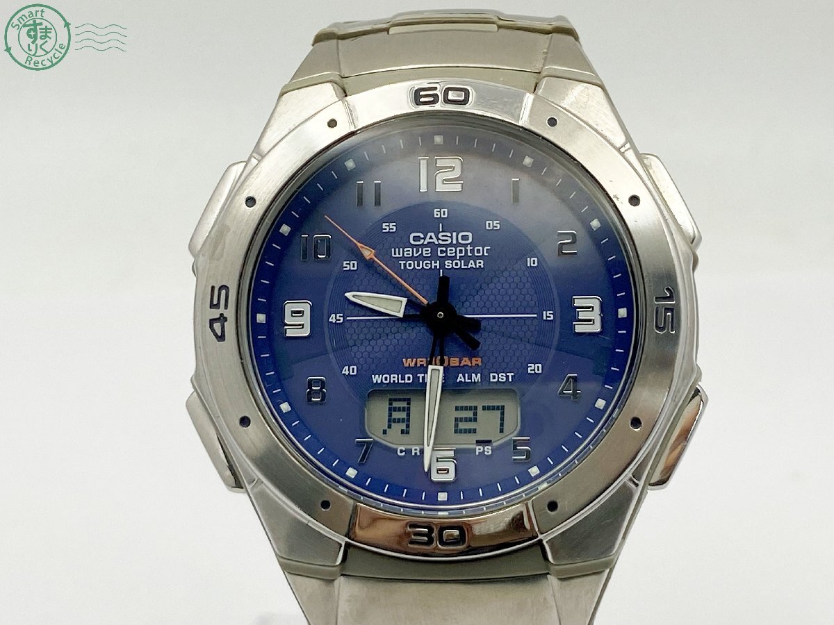 - BJ0707069 ◇ CASIO カシオ WVA-470 ウェーブセプター タフソーラー アナデジ ワールドタイム WR10BAR シルバーカラー 腕時計 中古