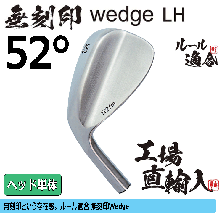 - 【レフティ】【ヘッド単体】無刻印 ウェッジ 新溝 ルール適合【ノーロゴ】【左利き】【LH】【ヘッドのみ】【52度】【Wedge】