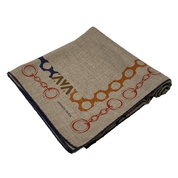 > エルメス HERMES ストール(ショール) ショールカレ140/カレジェアン カシミヤ、シルク ベージュ×オレンジ×マルチ 美品 マフラー