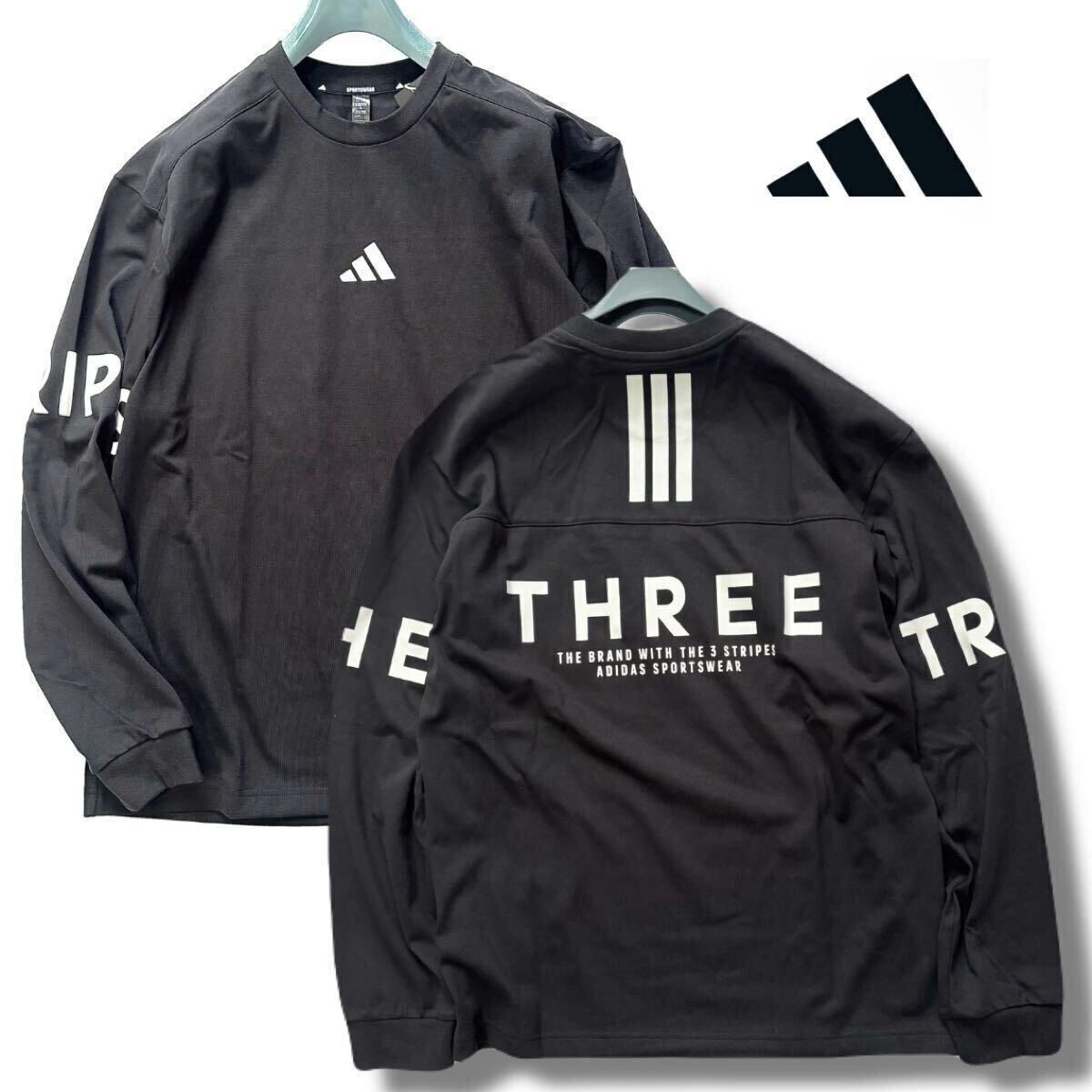 > ☆152新品【メンズL】黒 adidas アディダス ゴルフに最適 背面BIGロゴ 厚手 クルーネック ワーディング 長袖 シャツ