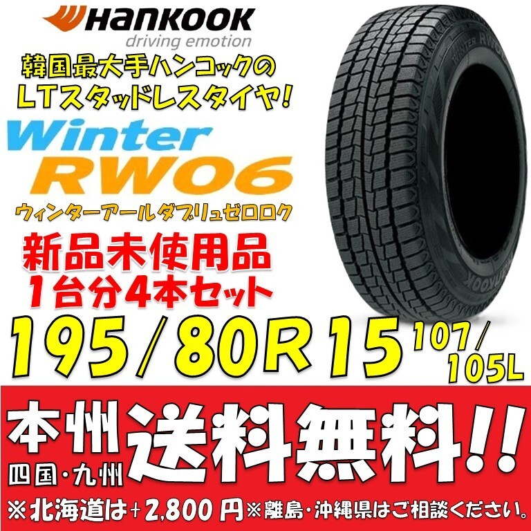 > ハイエース キャラバン バン用スタッドレスタイヤ 195/80R15 107/105L ハンコックRW06 2025年製 新品4本セット 即決価格◎送料無料 正規品