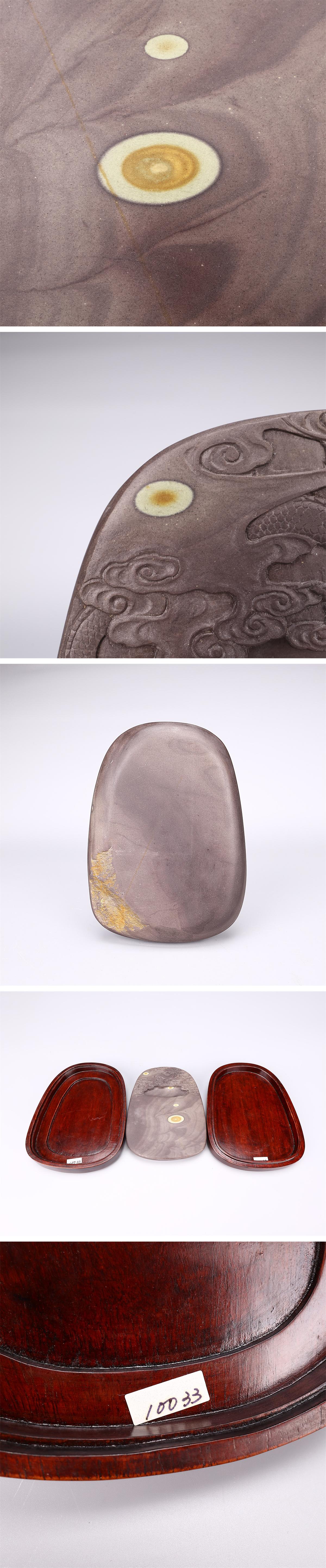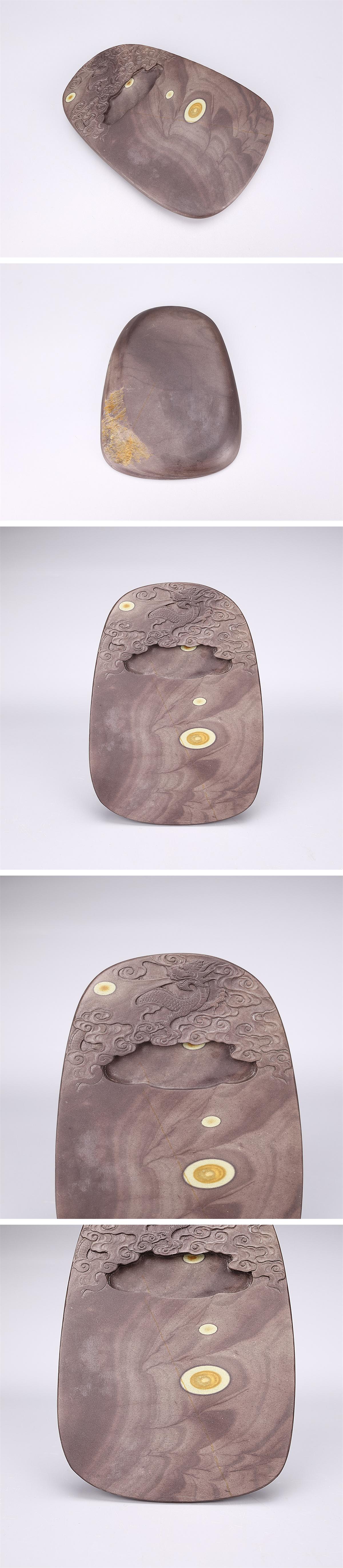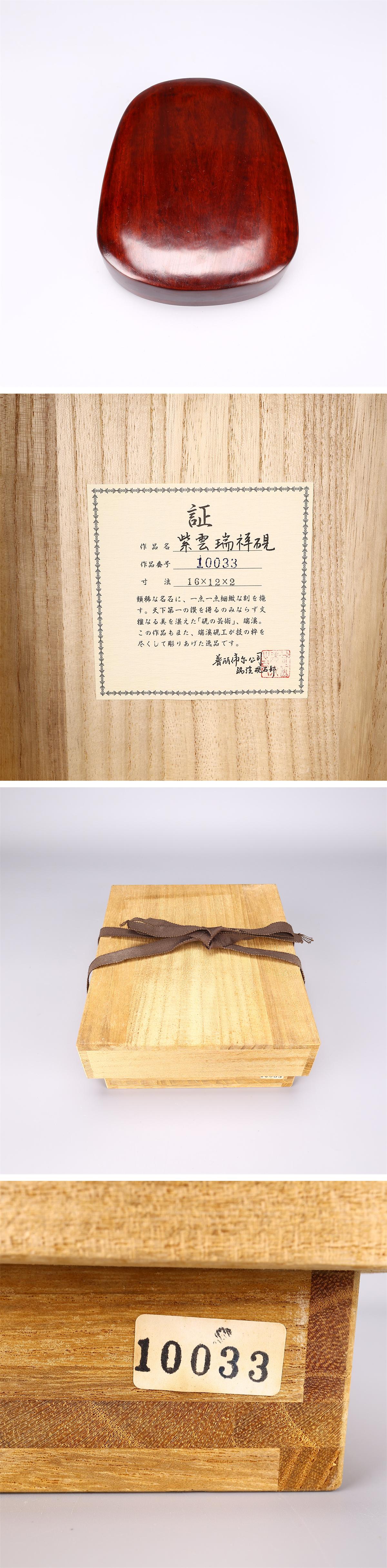 > 【吉】BB120 唐物 【天然端渓石製】 雲龍紋 「紫雲瑞祥硯」 書道具 端渓硯 幅16×11.6㎝ 重799g/木箱付 本物保証品Ng!