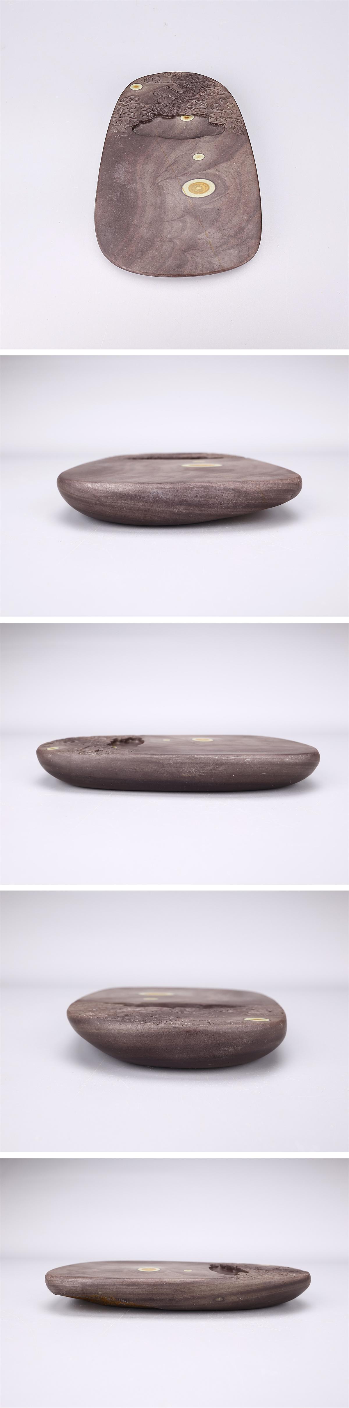 - 【吉】BB120 唐物 【天然端渓石製】 雲龍紋 「紫雲瑞祥硯」 書道具 端渓硯 幅16×11.6㎝ 重799g/木箱付 本物保証品Ng!