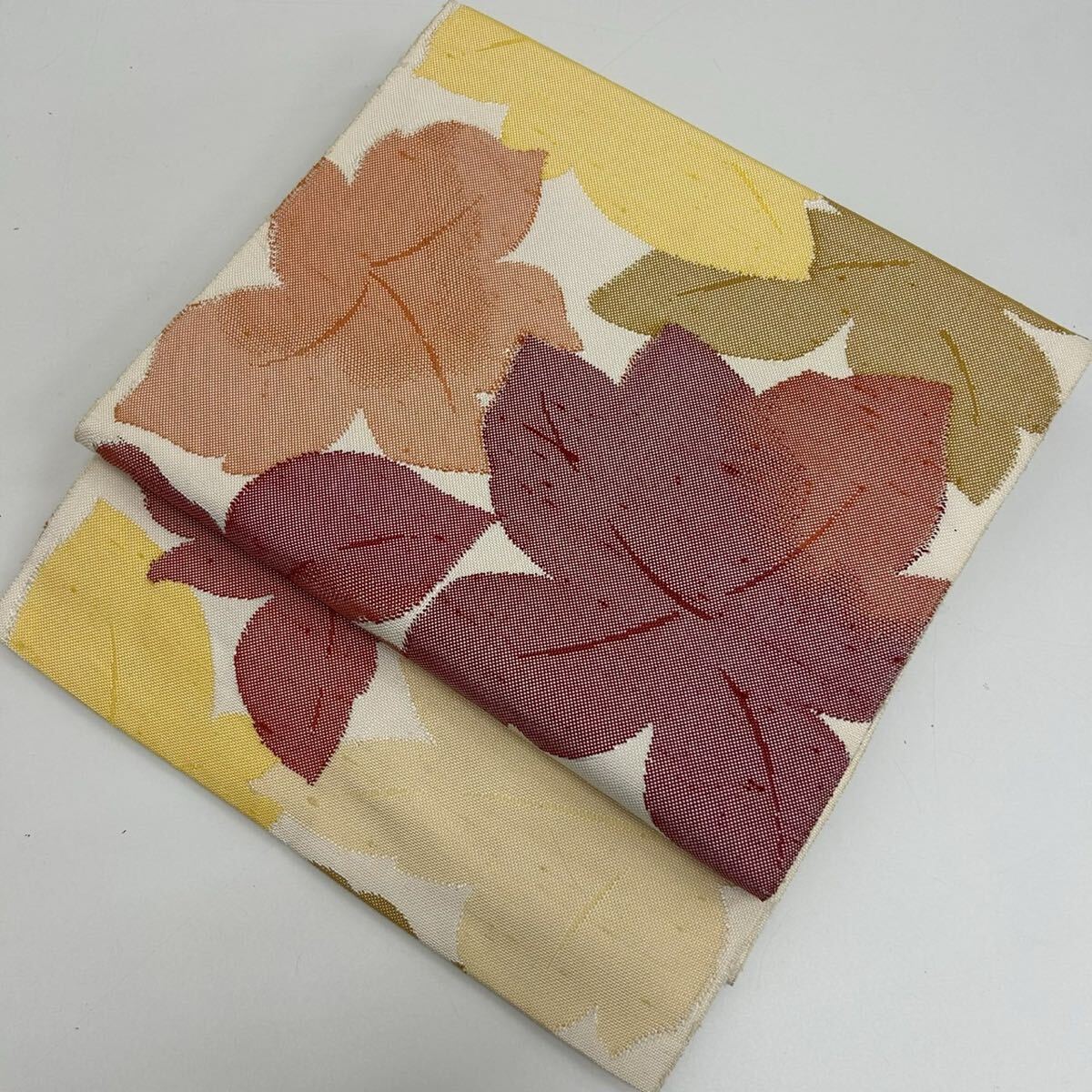 > 名古屋帯 紬 大柄楓模様 八寸 正絹 着物 F-525