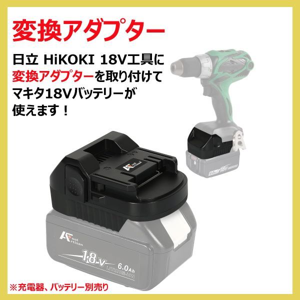 - 変換アダプター AT-MH01BK 日立(HiKOKI)18V 電動工具⇒マキタ18Vバッテリー使用を可能にする 変換アダプター *充電器・バッテリー別売り