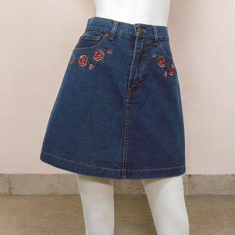 - 新品☆デニム スカート M 花柄刺繍入り レディース ミニスカート コットン 綿/ブルー/12938833