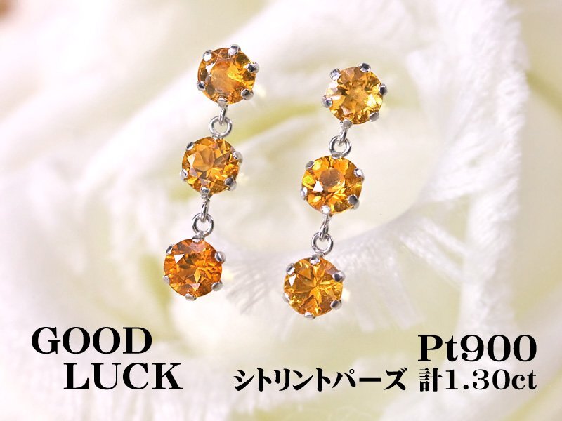 - 【新品・未使用】1円~最落無 天然シトリントパーズ 計1.30ct,プラチナ 11月誕生石 琥珀色の煌き スリーストン シトリントパーズ ピアス