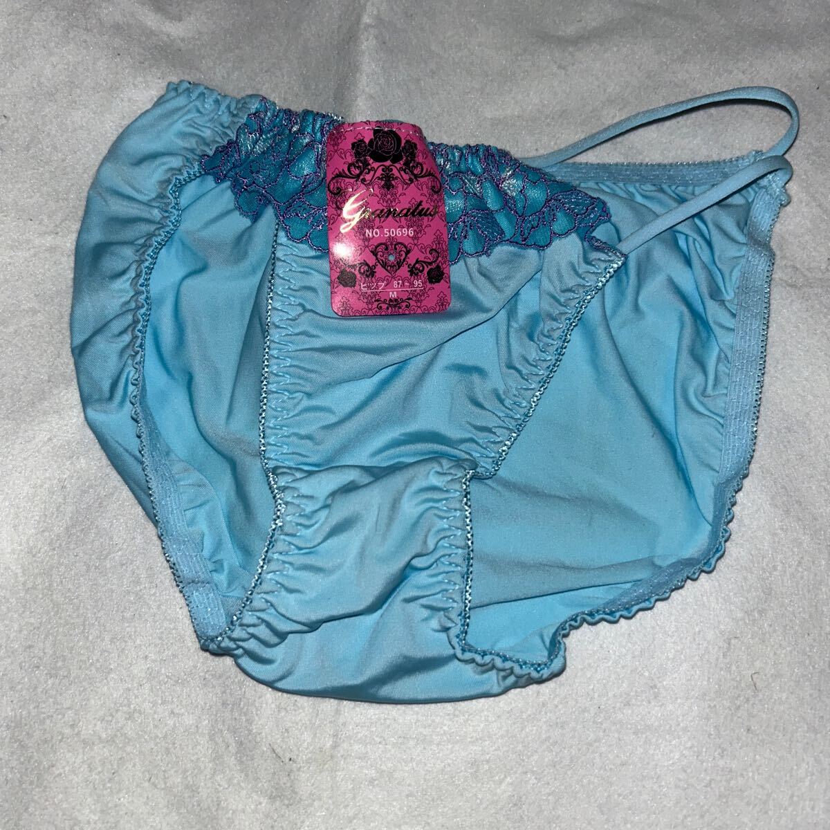 - フェミニンショーツ レース M 水色 トリコットショーツ つるすべ 花柄 サラサラ