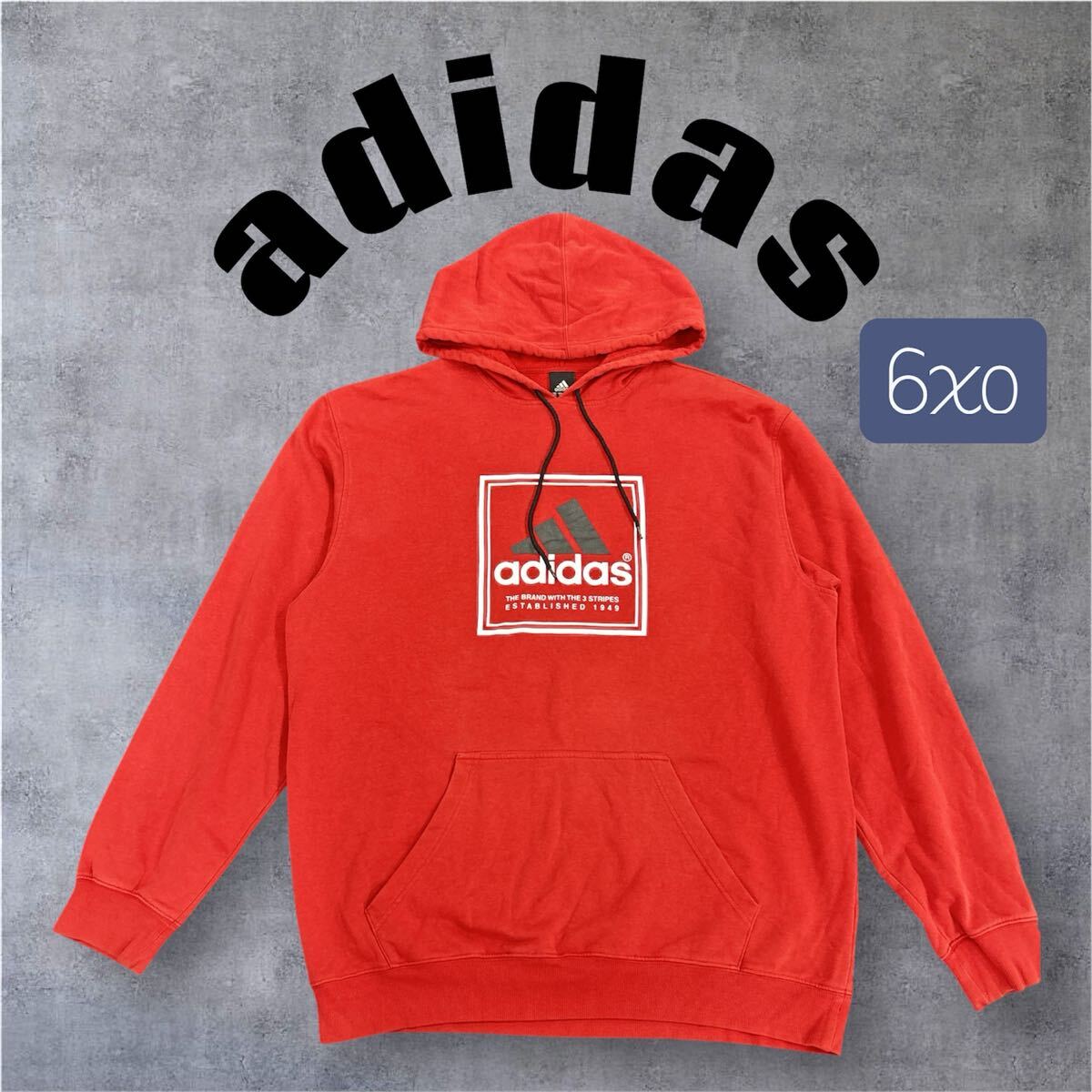 - サイズ6XO adidas パーカー スウェット 裏起毛 レッド プルオーバー 古着 長袖 pa0670