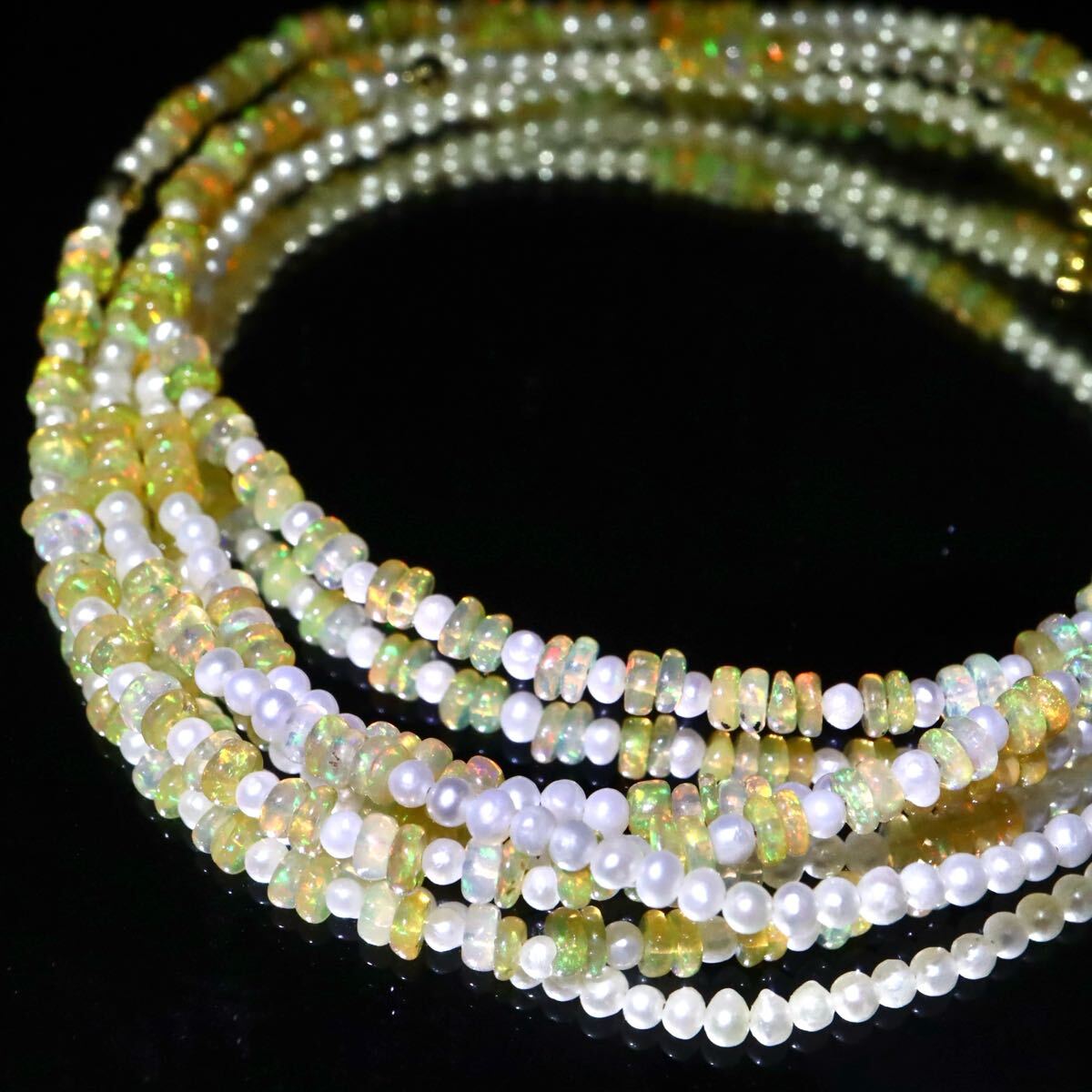 - K18!!◆天然オパール/本真珠ロングネックレス◆N 約7.9g 約87.0cm fire opal pearl パール necklace jewelry ジュエリー 淡水 DG0/EA0 M53