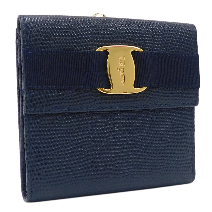 > 1円■フェラガモ 三つ折り財布 ブラック×ゴールド系 レザー お洒落 お出掛け Salvatore Ferragamo ■E.Bml.pS-23