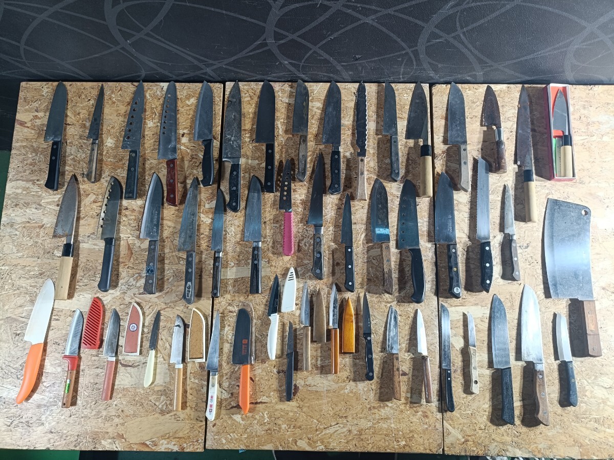 - (UJ125)大量 包丁 ナイフ 刃物50本まとめ 和包丁 刺身包丁 出刃包丁など 調理器具 在銘 現状品