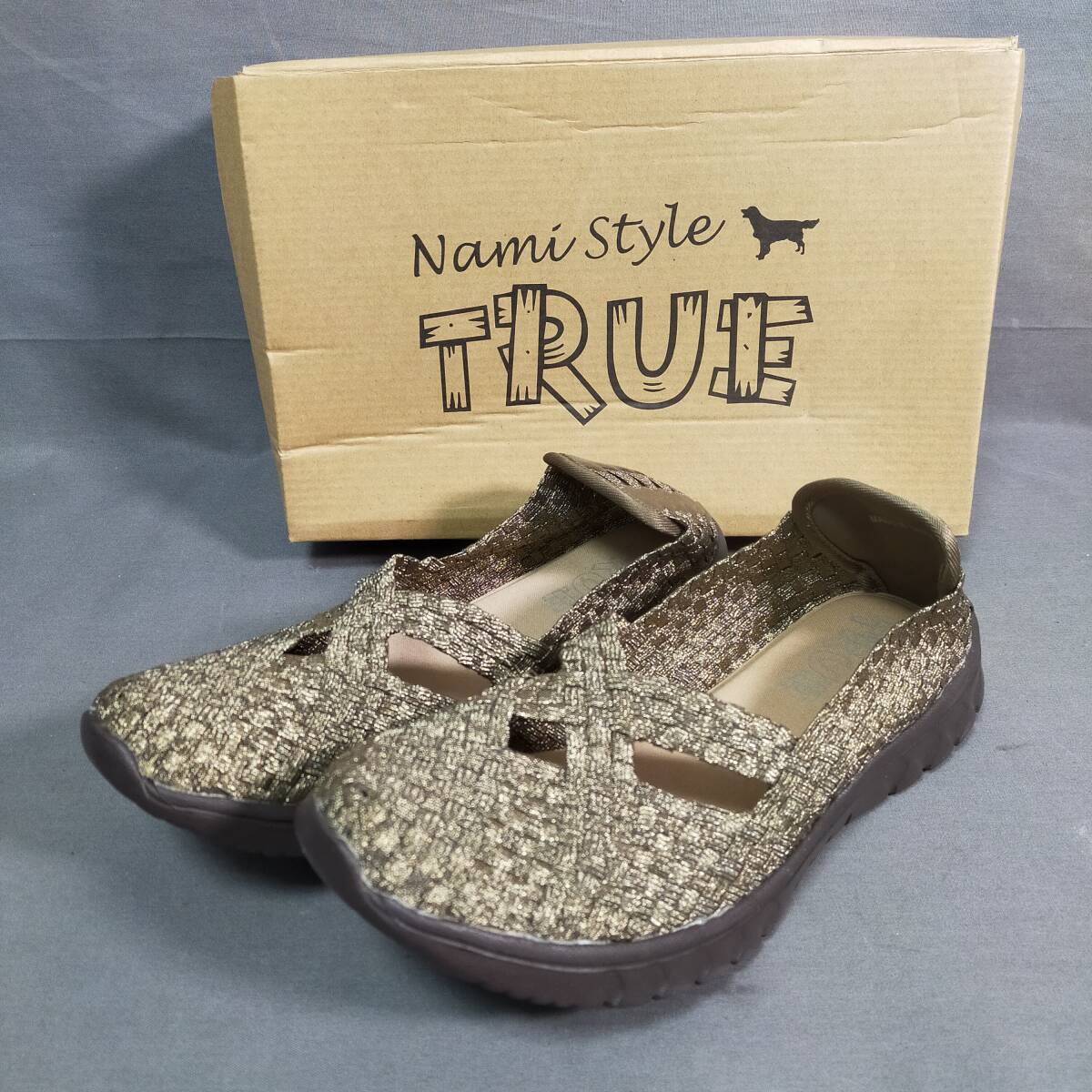 - 5710/28 GJ72324 Nami Style TRUE ストレッチ クロス シューズ ゴールド スリッポン シューズ サイズLL 箱付き used 現状品