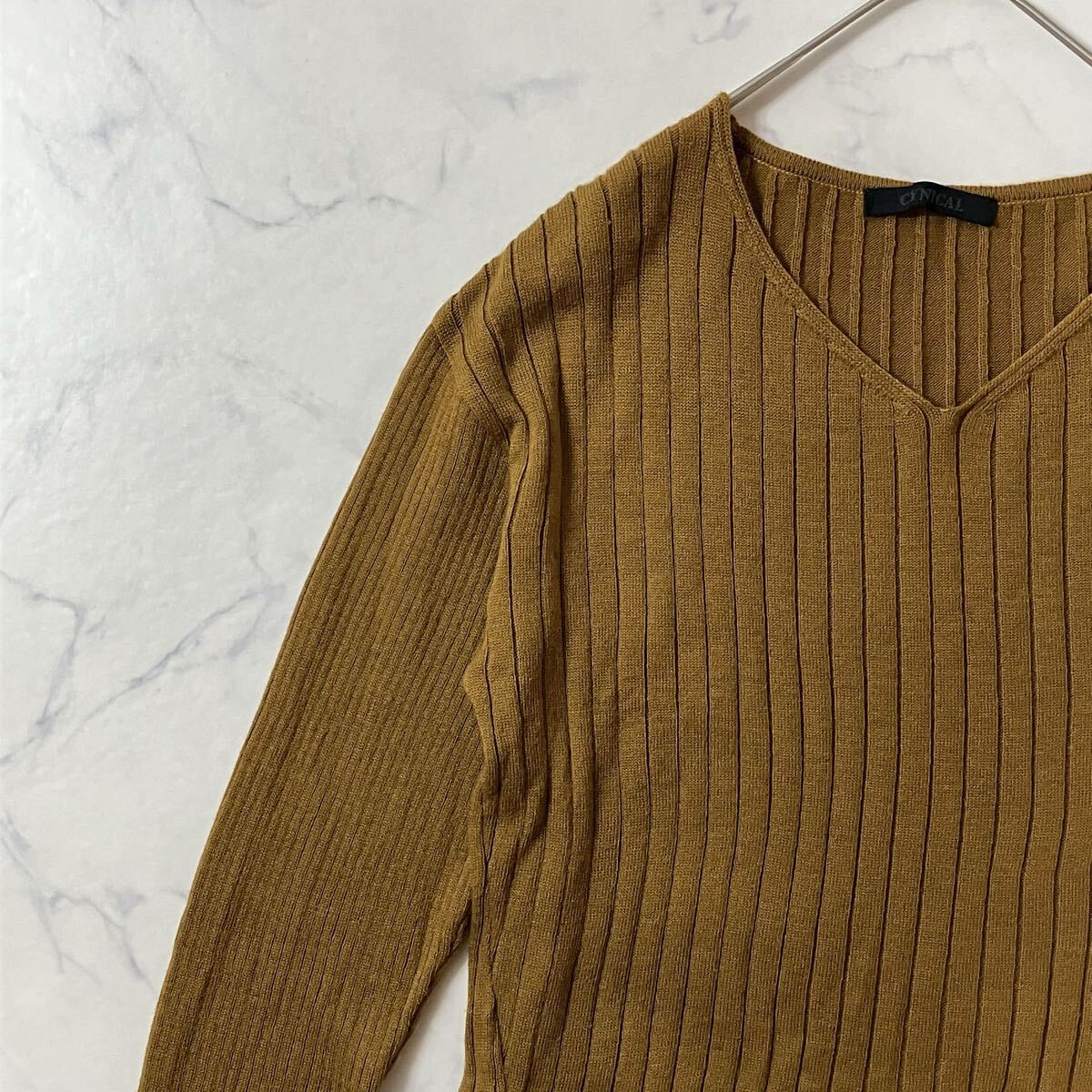 - CYNICAL シニカル 日本製 ワントーン ウール混 Vネック 切替 リップル ニット ブラウン 02