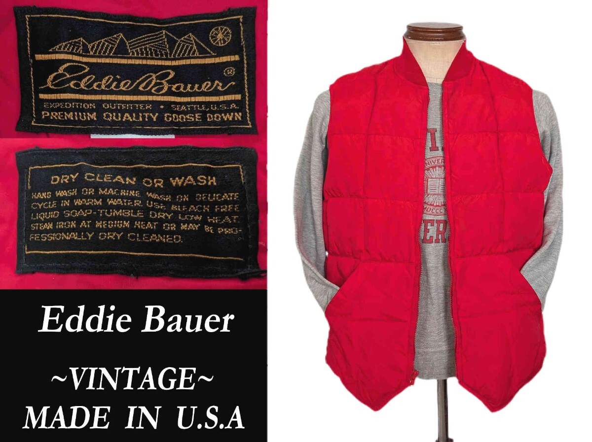 > ビンテージ 黒タグ Eddie Bauerスクエアキルト Goose downベストUSAアメリカ製 スカイライナーVINTAGE マッコイズ camp ウエアハウスmodel