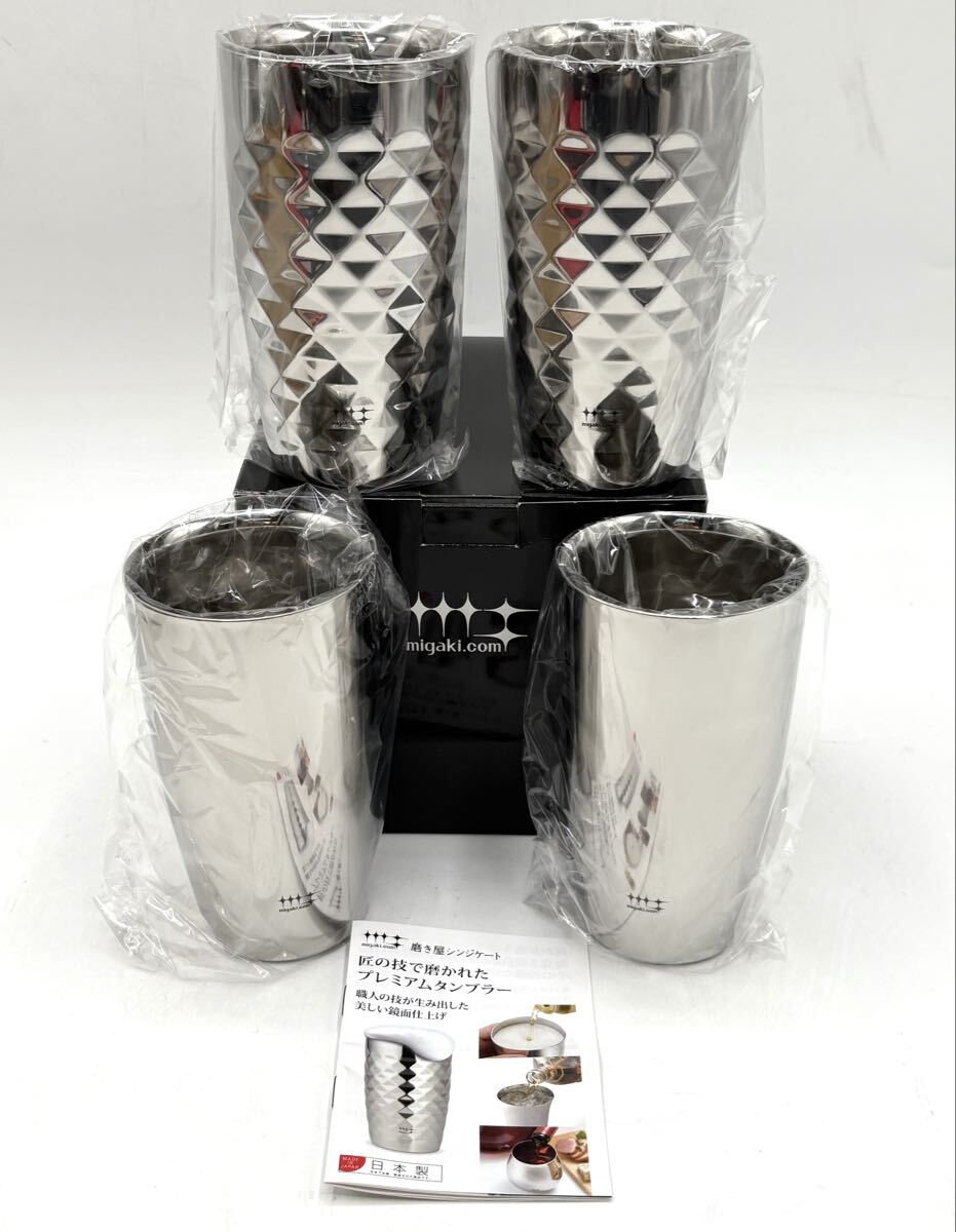 - 【た-10-90】60 未使用 磨き屋シンジケート ステンレス製タンブラー 2重ビアタンブラー 4点セット 鏡面2点 ダイヤカット2点