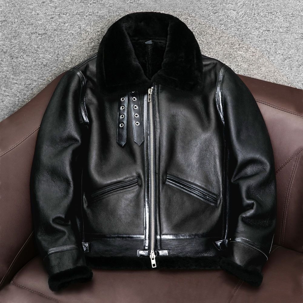 - フライトジャケット 羊革 ムートン 毛皮一体 天然革 シープスキン 本革 メンズファッション ビッグサイズ コート 大戦モデル S~3XL