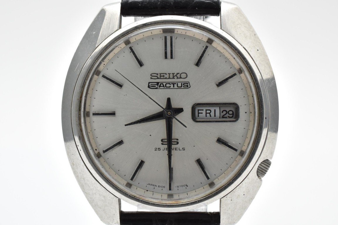 > 稼働品 SEIKO セイコー 6106-8460 ラウンド 銀 シルバー レディース 腕時計 3針 デイデイト 銀文字盤 自動巻き 25JEWELS