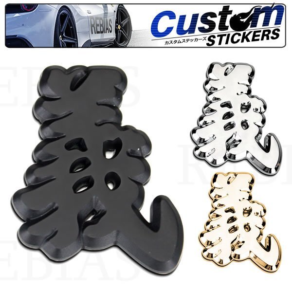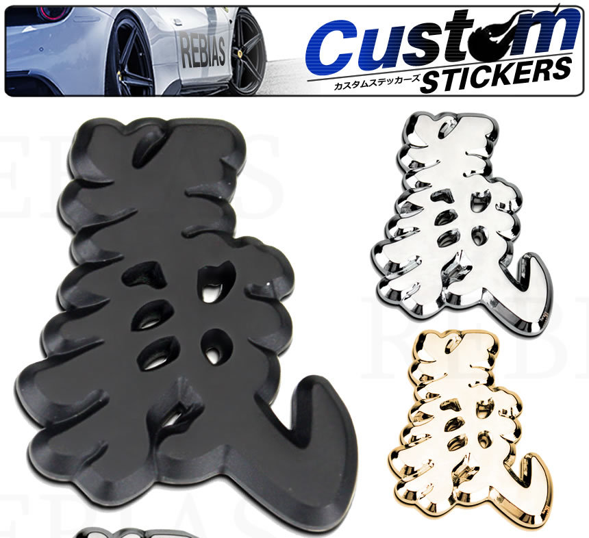 - 送料無料 漢字エンブレム 義 【シルバー】 ステッカー 車 メタル 立体 3D 外装 デカール バイク カスタム