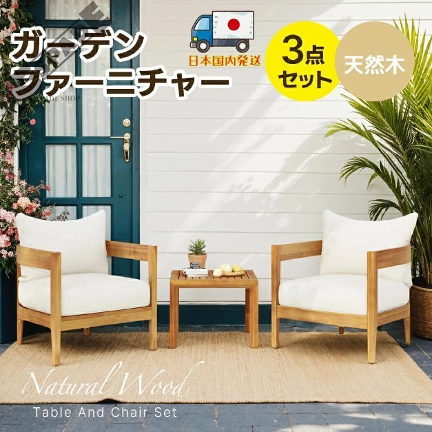 - 【国内発送】ガーデンファーニチャー 3点セット 天然木 屋外用 肘掛け ソファ ガーデンファニチャー ホテル カフェ ベランダ テラス テーブ