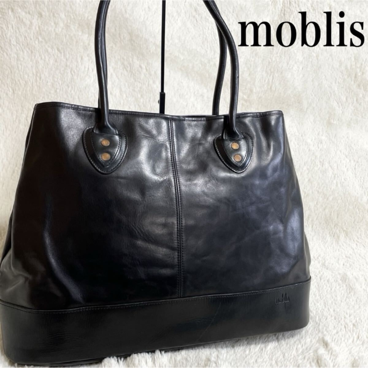 - 美品 定価60000万 moblis モブリス オールレザー イタリアカウレザー トートバッグ 黒 ショルダーバッグ メンズ 本革