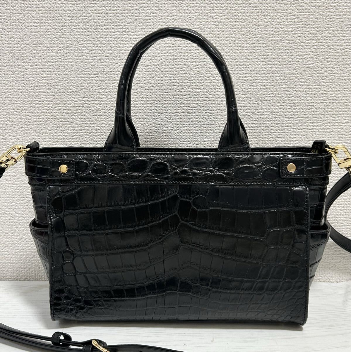 > 美品 鰐革 三宝 sanpo レディース ショルダーバッグ ハンドバッグ 本革 ワニ革 リアルクロコダイルレザー 黒色 ブラック 高級 穿孔 マット