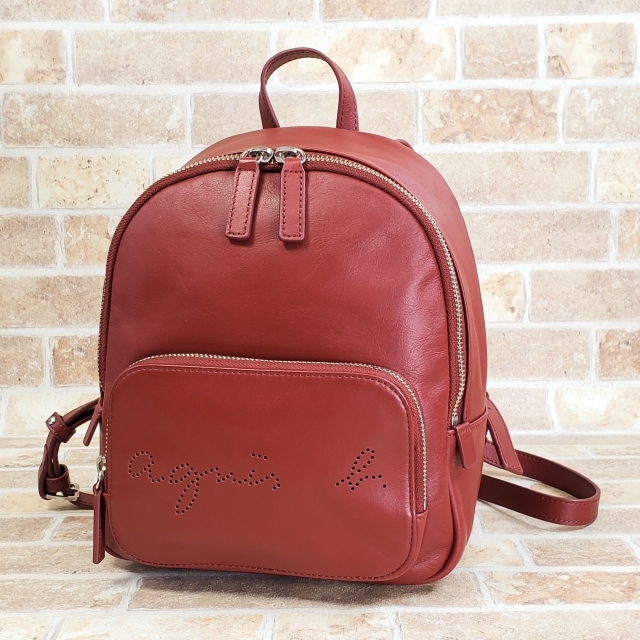- 美品 アニエスベー レザー パンチングロゴ リュックサック 小ぶり レッド agnes b.