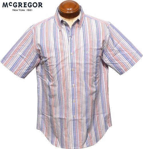 > 【ブルー M】 マクレガー ボタンダウン半袖シャツ メンズ 111164101 サッカー素材 クールマックス 吸汗速乾 半袖シャツ mcGREGOR