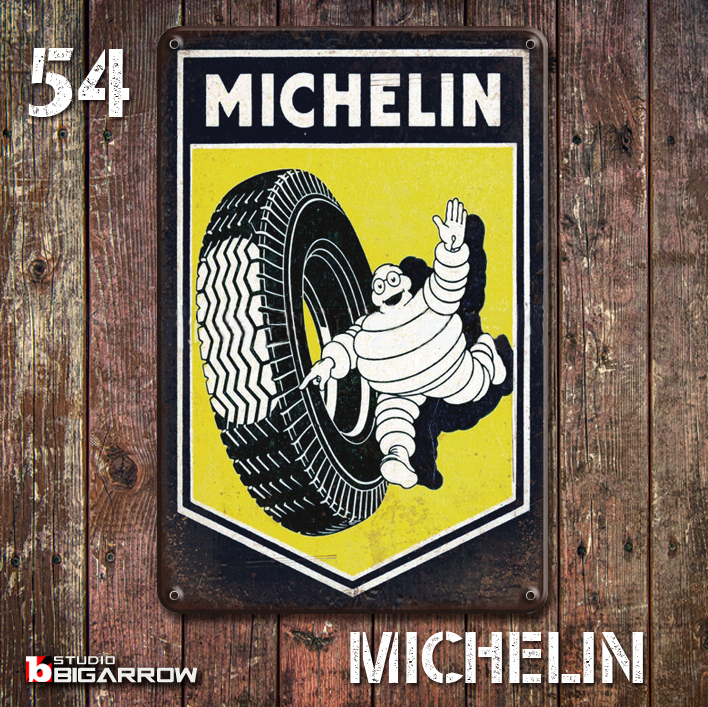 > 54 ブリキ看板 20×30㎝ MICHELIN ミシュラン ビバンダム ガレージ メタルプレート アメリカンインテリア USフェンス 世田谷ベース