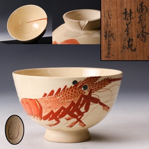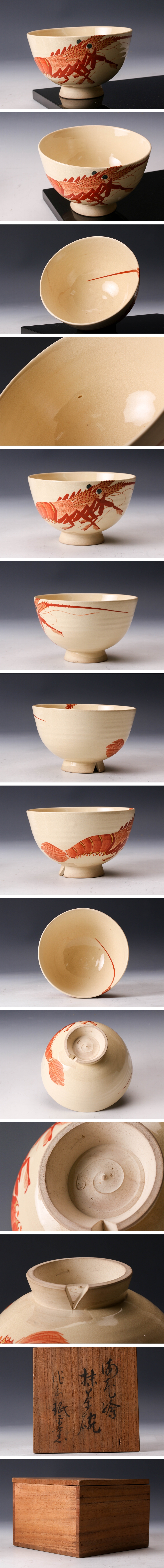 【佳香】淡島 珉平窯 海老絵茶碗 共箱 茶道具 本物保証