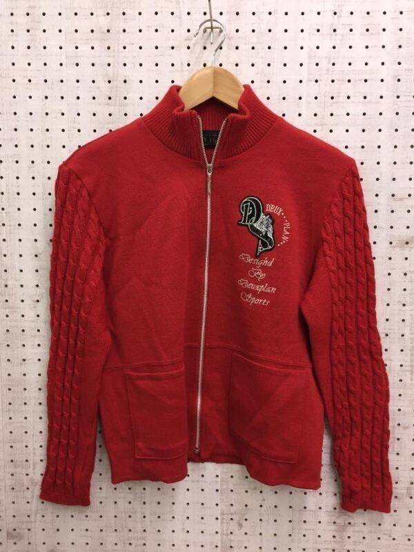 > Deux-PLAN ドゥープラン ラインストーン オールド レトロ ブティック 古着 ウール100% 日本製 ケーブル編み ニット ジャケット レディース