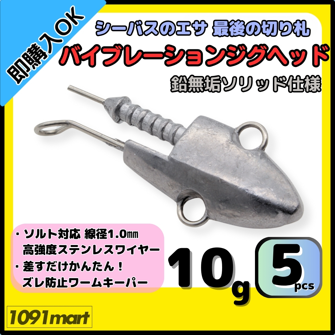 > 【送料無料】バイブレーションジグヘッド 鉛無垢 ソリッド仕様 10g 5個セット スイミングジグヘッド VJ風 シーバスルアー ワーム