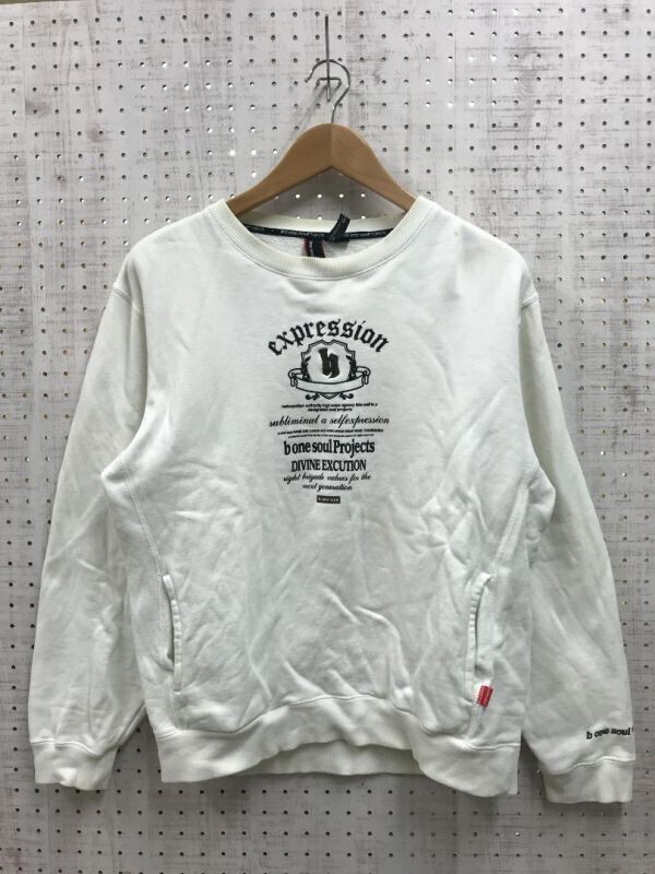 > B ONE SOUL ビーワンソウル メンズ 00's オールド ストリート ヒップホップ ポケット付き スウェットトレーナー 白 Mサイズ