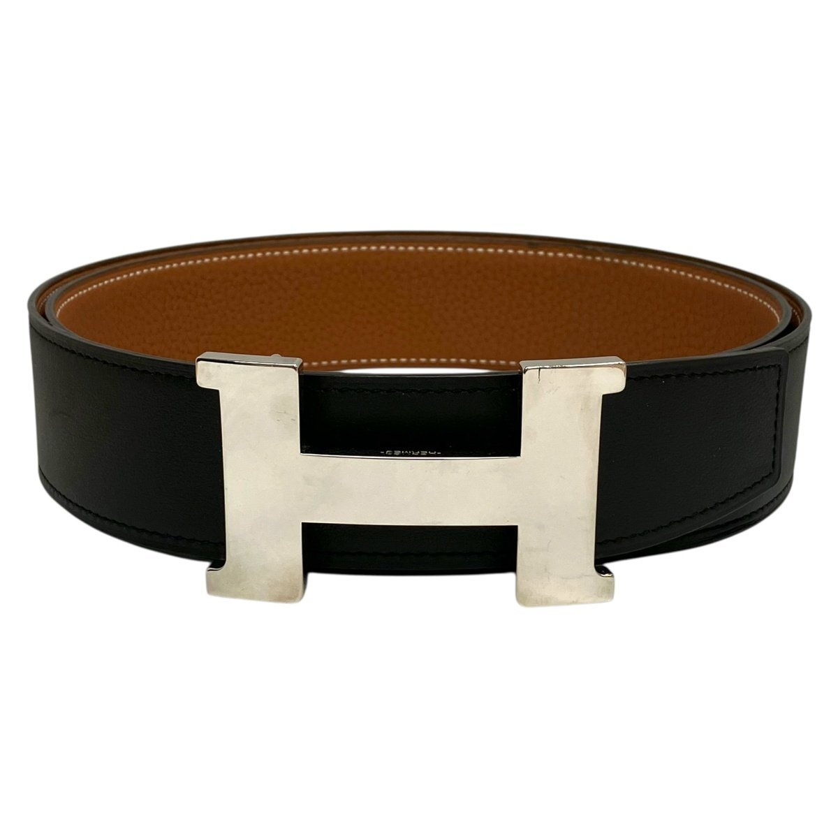 > HERMES エルメス Hバックル ベルト Hベルト リバーシブル レザー ブラック 黒 ブラウン シルバー金具 95サイズ D刻印 メンズ【中古】