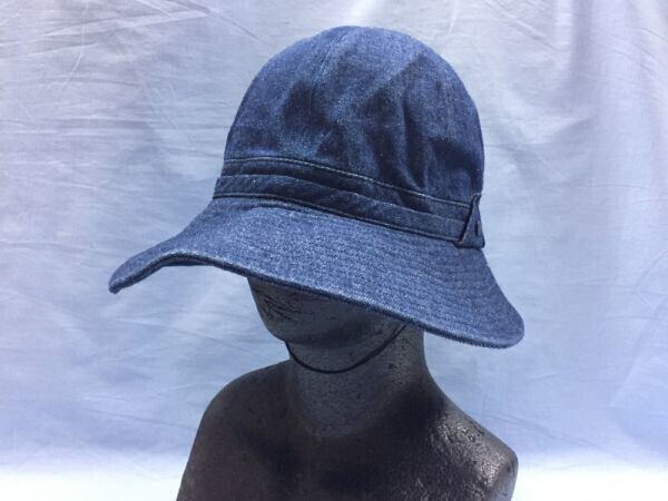 > Zenbou 全日本帽子協会 オールド レトロ アメカジ アウトドア デニム バケットハット 帽子 レディース 首紐ゴム付き 紺