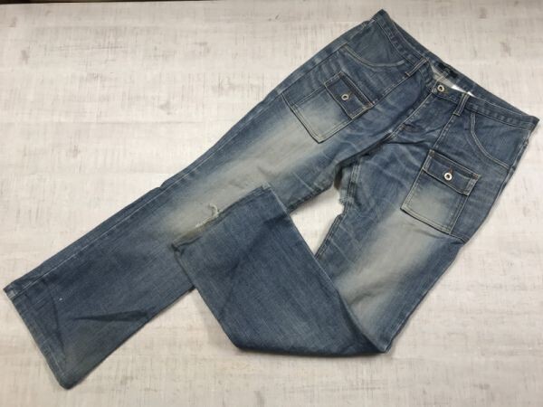 - INED イネド ネオグランジ古着 ブッシュ ベイカー ブーツカット フレア デニム パンツ ジーンズ レディース ジップフライ 日本製 15 青