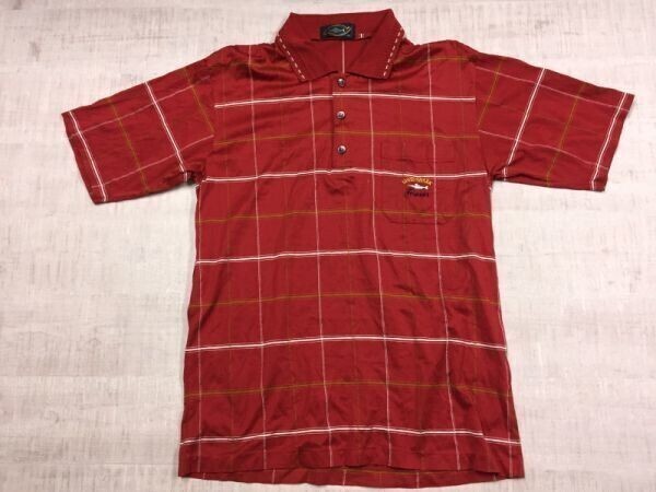 - good shark オールド レトロ 古着 チェック 半袖ポロシャツ メンズ 46 赤