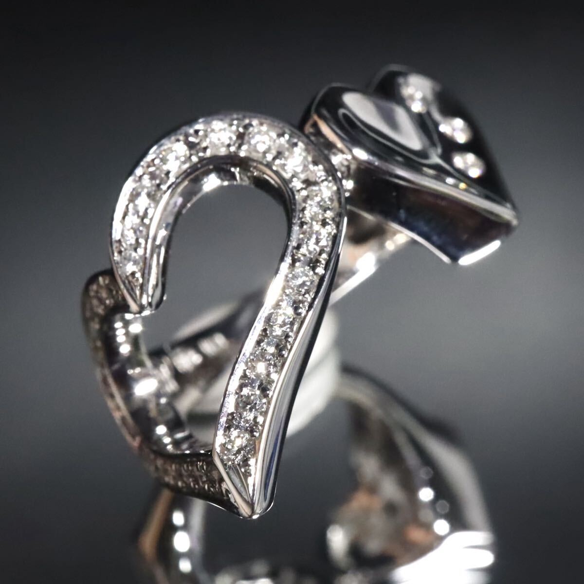 > K18WG!!0.36ct!!◆ハートモチーフ天然ダイヤモンドリング◆N 約7.7g 約2.5号 #2.5 diamond 指輪 ring ピンキーリング 小指 FA2/ X521