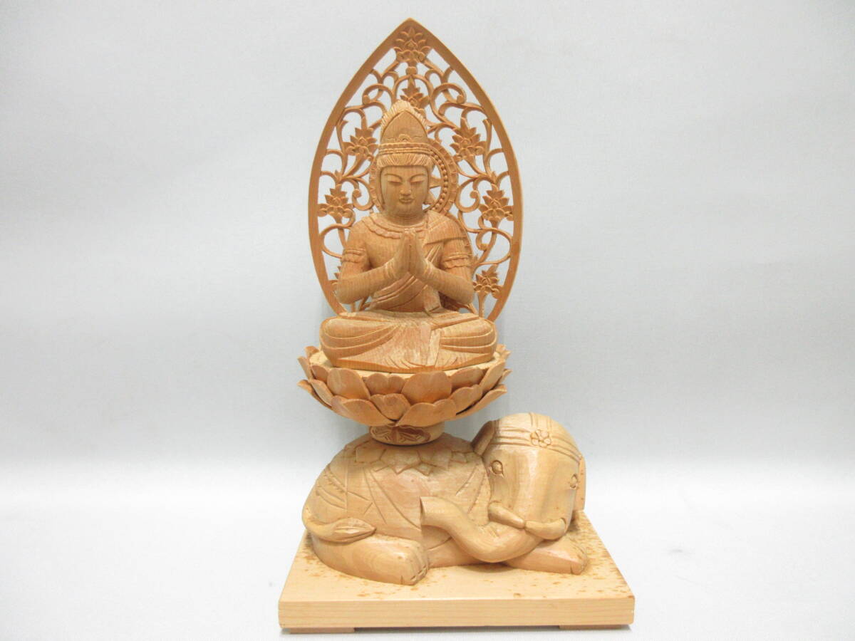 - 美術祭 仏具祭 仏像 ① 木彫 普賢菩薩 蓮華座 象の台座 置物 仏具 仏像 仏教 詳細は画像でご確認ください