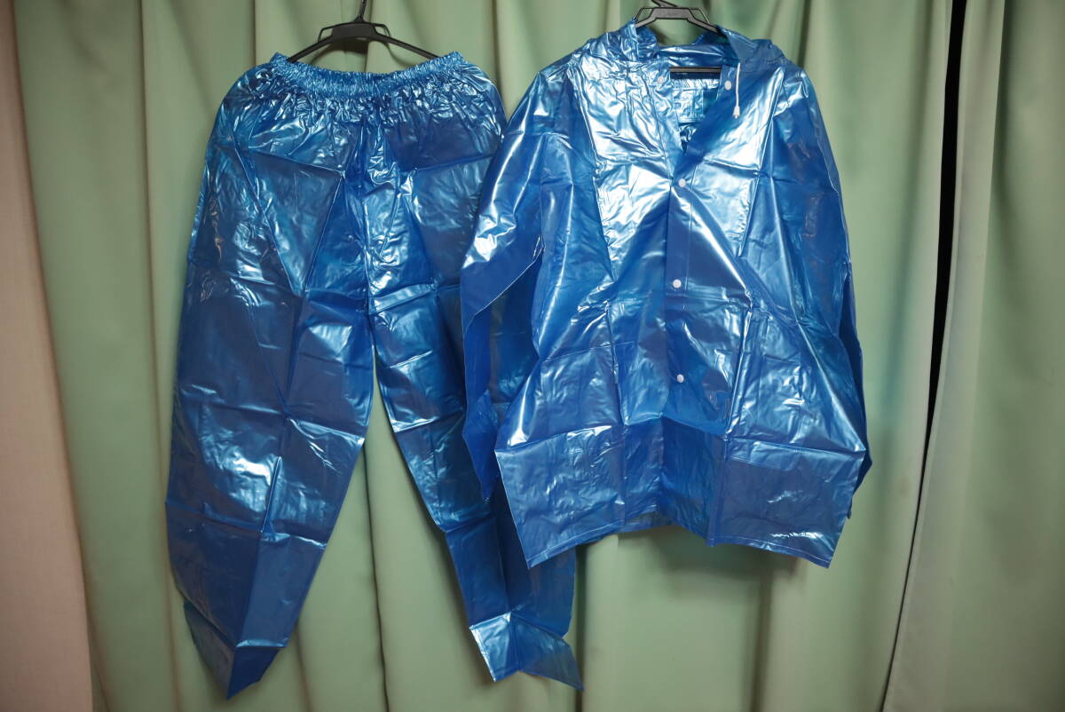- ☆レトロ 光沢ビニールレインコート合羽上下 ブルー フリー☆