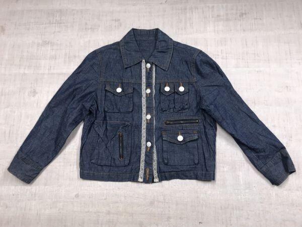 > F・I・A・C GRANDE レトロ ガーリー テック アウトドア Y2K 00s 古着 マルチ メニー ポケット デニム長袖ジャケット レディース 9号 紺