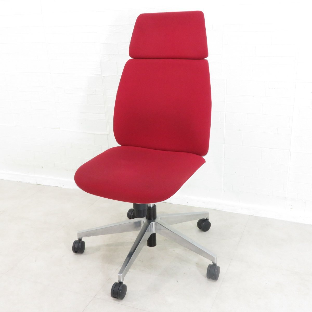 > プラス 肘無オフィスチェア Uチェア KC-UC56SEL RD レッド ハイバック ホワイトシェル 上下昇降 事務椅子 ワーク EG16736 中古オフィス家具