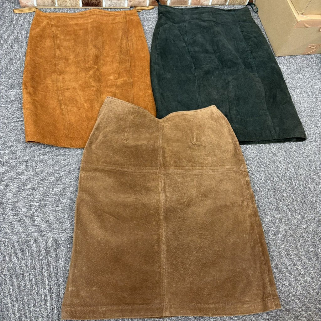 > ●1円スタート●レザー 革製 台形ミニスカート 3着まとめ売り 豚革 本革 秋服 スカート ボトムス 服 HS207065
