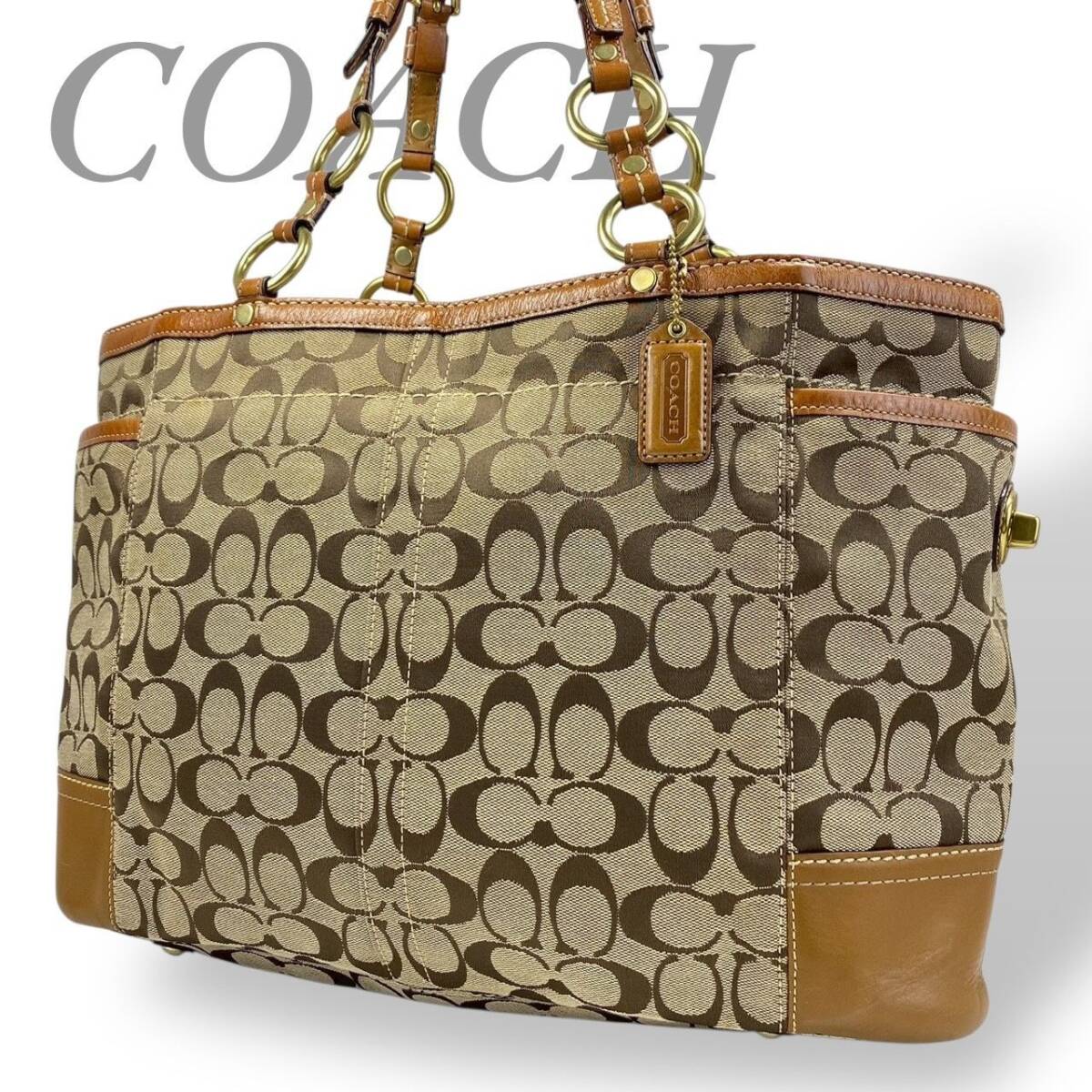- 【B3704】 COACH コーチ トートバッグ ショルダーバッグ シグネチャー A4収納 レディース 肩掛け キャンバス ライトブラウン