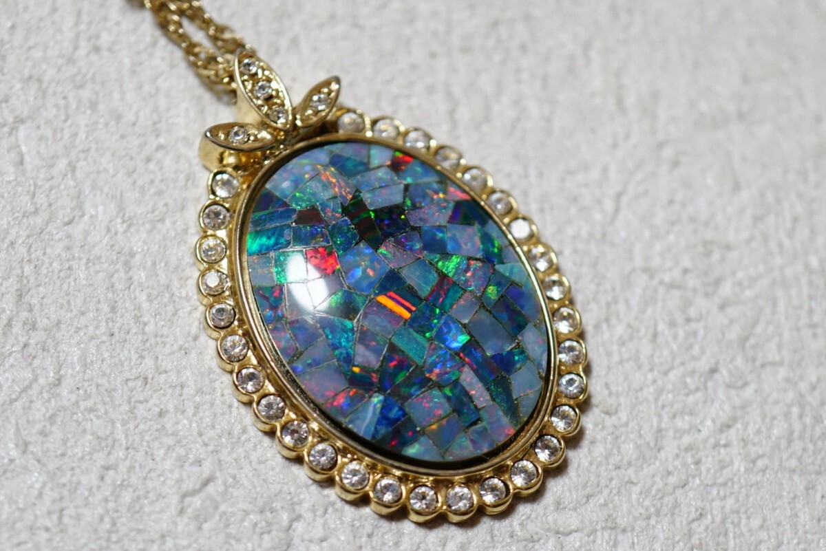 > 1422 モザイクオパール ゴールドカラー ペンダント ネックレス ヴィンテージ アクセサリー 宝石 色石 カラーストーン 装飾品