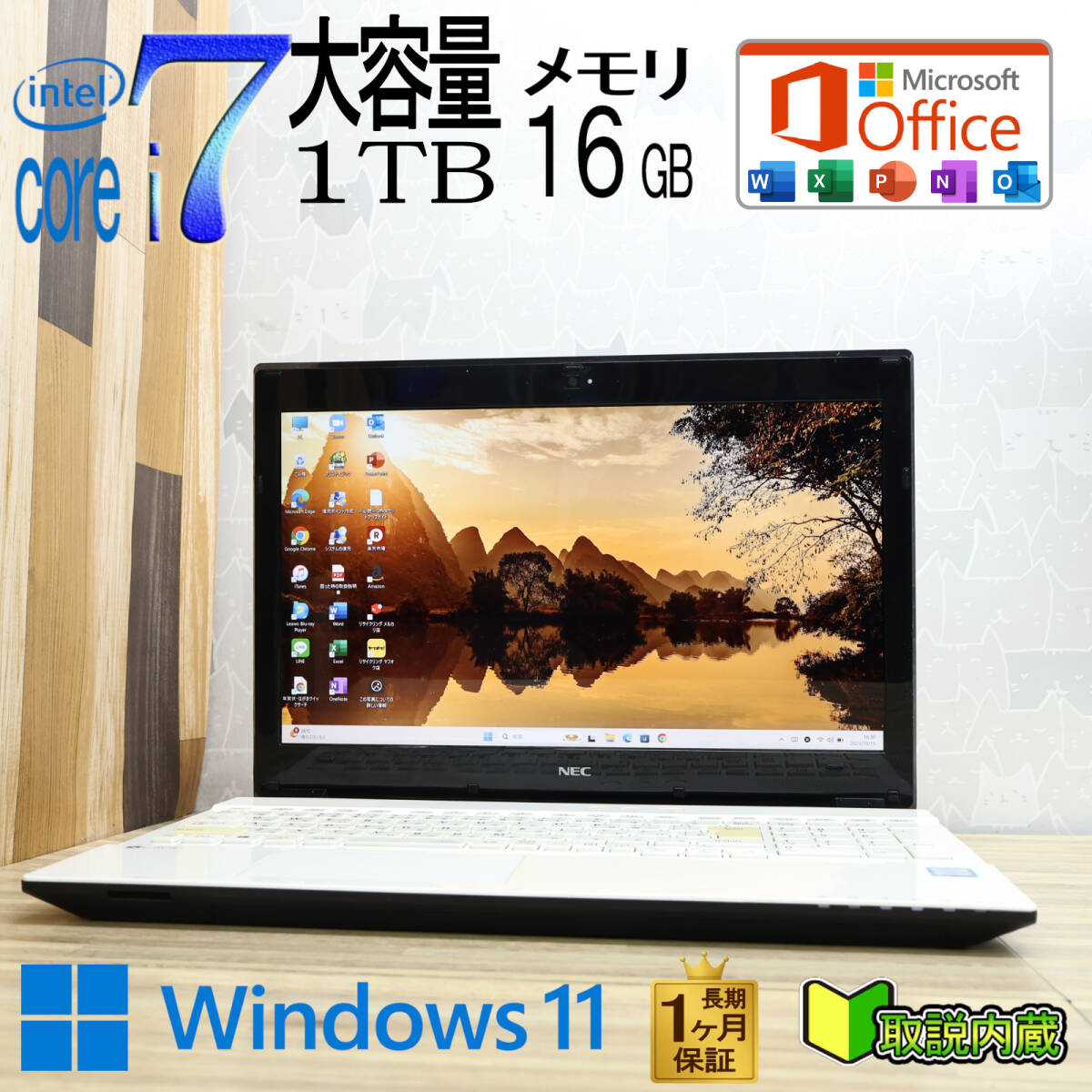 > ★美品 最上級7世代i7!大容量1TB メモリ16GB★NS650G Core i7-7500U Webカメラ Win11 MS Office2019 H&B ノートパソコン★P94340