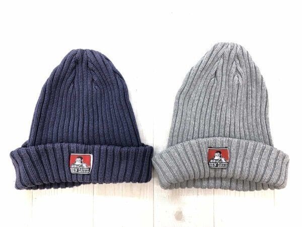 - ベンデイビス BEN DAVIS アメカジ ストリート ワーク リブ コットン ニット帽 ワッチキャップ 2点セット 男女兼用 綿100% ライトグレー/紺