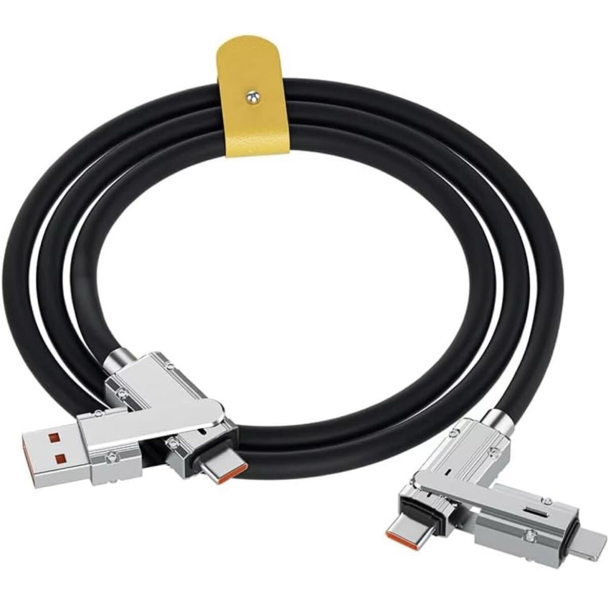 > 4-in-1 USB充電ケーブル、120W PD対応、Type-C、iPhone・Samsung対応、シリコン素材、高速データ転送 (ブラック)