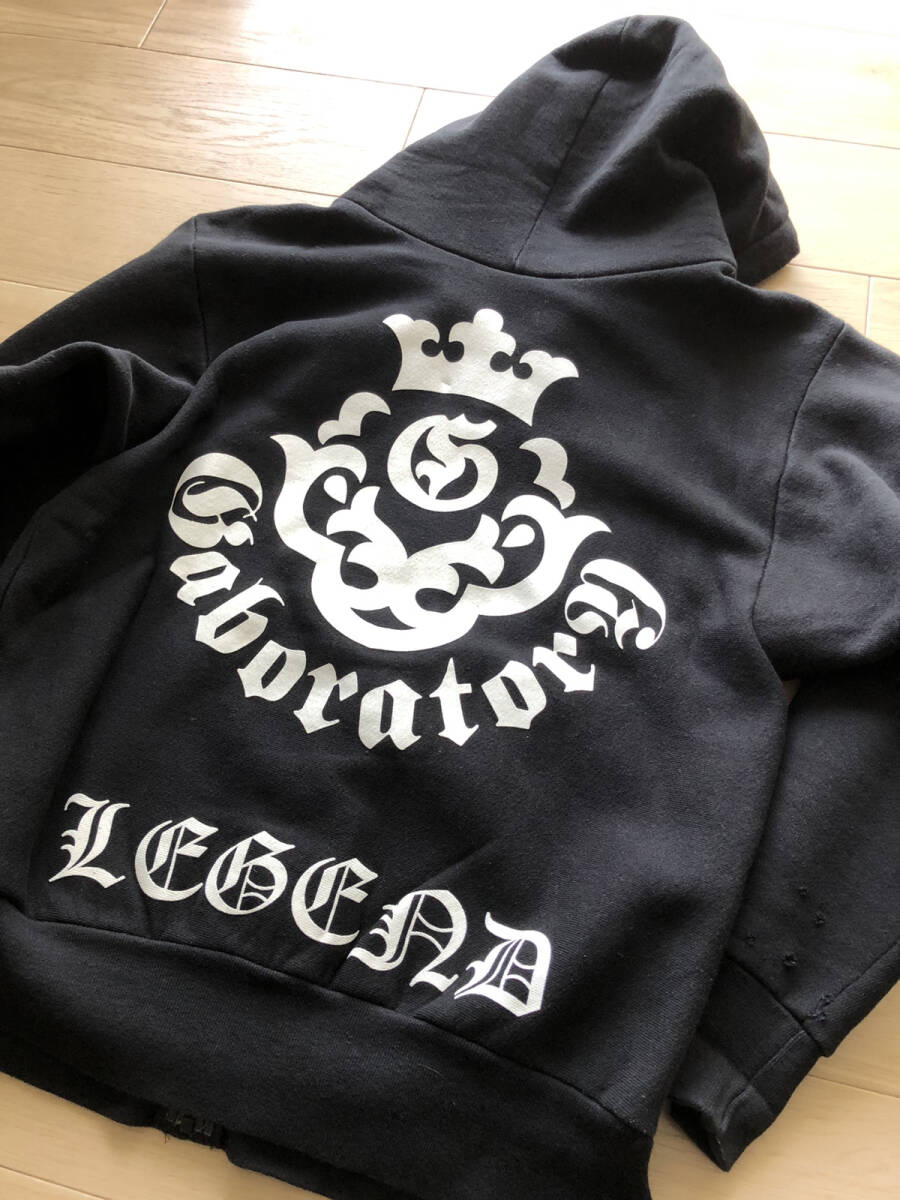 > 【1000円〜】Gaboratory ガボラトリー フロントジップBIGサイズ ロゴパーカー 袖クロスプリント 黒 ブラック Gabor ガボール