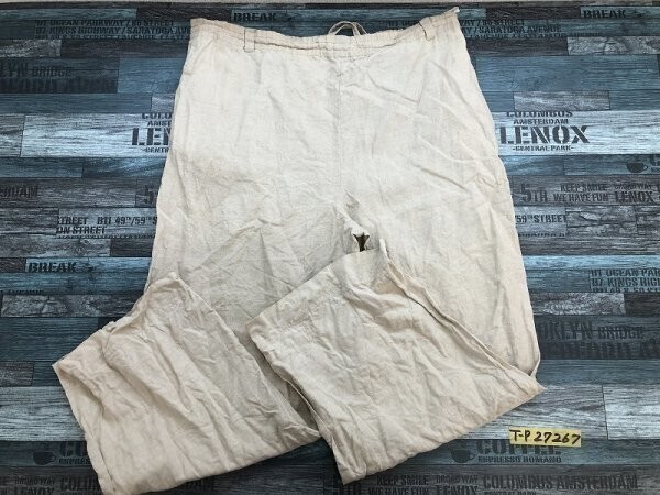 - gmTen レディース リネン ウエスト紐 ワイドパンツ M ライトベージュ